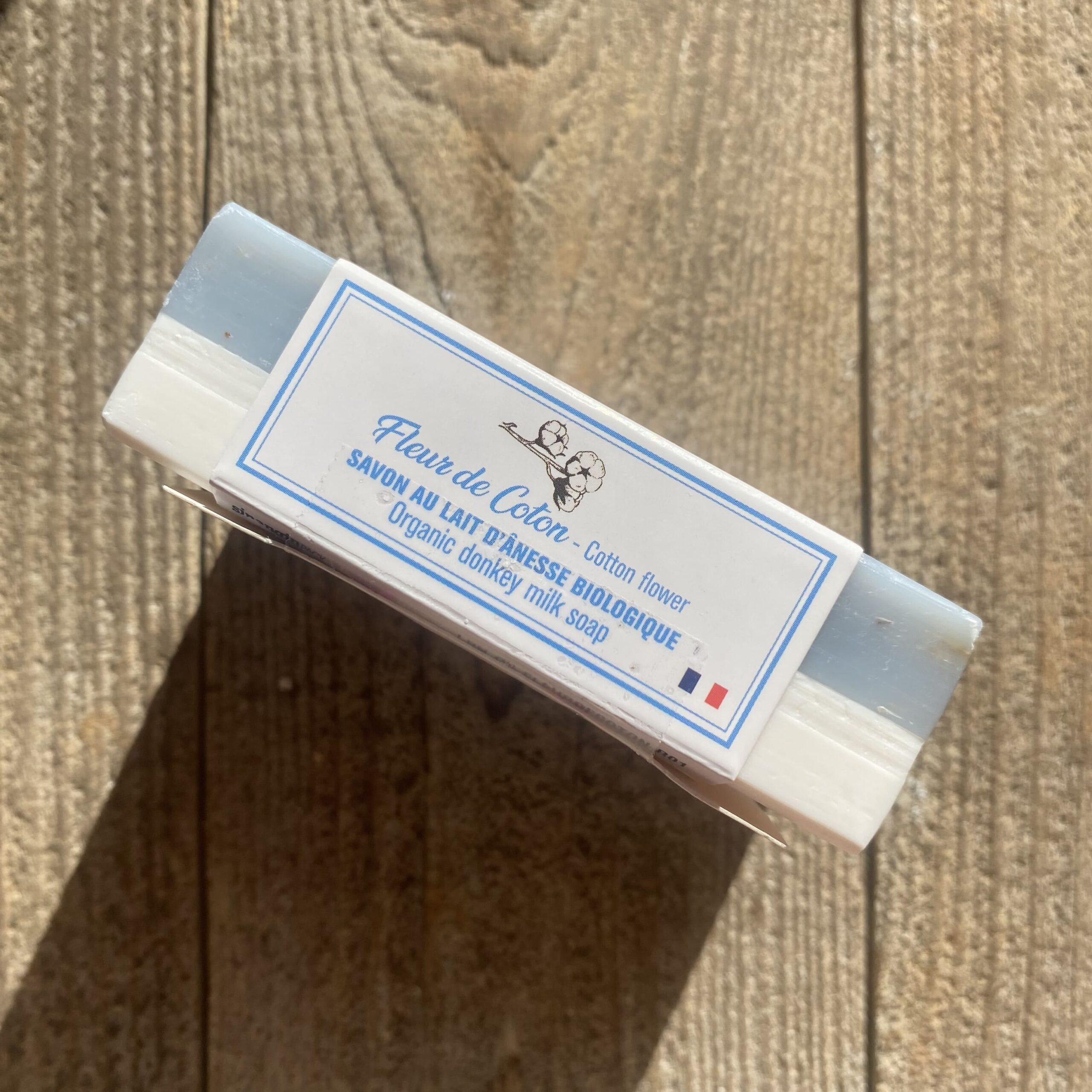 Savon exfoliant au lait d’ânesse biologique et fleur de coton
